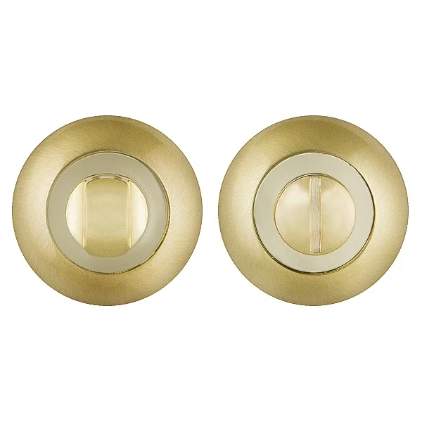 Поворотные ручки на круглом основании Punto BK6 серии TL из коллекции SIMPLE LIVING подходят для установки на внутренние входные и межкомнатные двери. Материал изготовления: ZAMAK (сплав цинка, алюминия, магния и меди). Гальваническое покрытие прошло тест на устойчивость к коррозии в соляном тумане и соответствует 1 классу ГОСТ. Цвет: матовое золото/золото. В комплект входят: соединительный квадрат 6x80 мм, винты, стяжные винты.