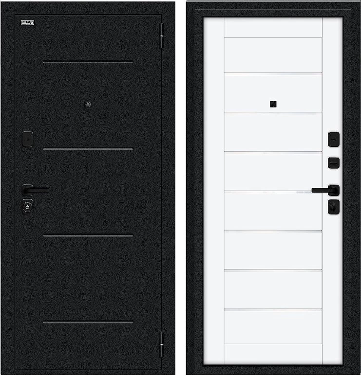 Дверь Браво Техно/SBlack Букле черное/White Silk среднего ценового диапазона. Стоит дверь 28 950 руб. и это отличное соотношение цены и качества. Модель подойдет для установки, например в новостройку. Прослужит долго и будет надежной защитой вашей квартиры или дома.